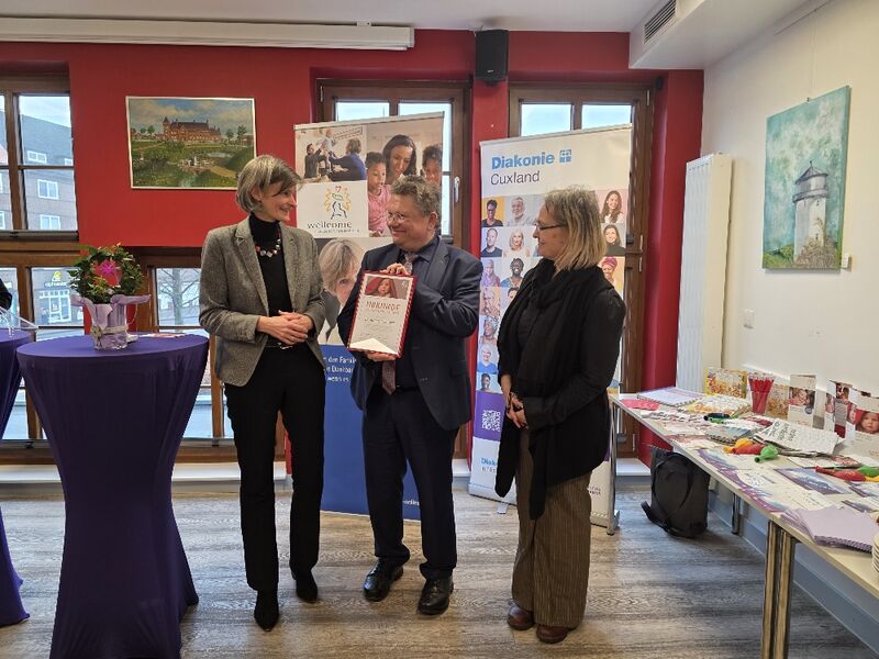 Am Mittwoch, 11.02.26, fand auf Einladung der Diakonie Cuxland im Bürgerbahnhof „Lokschuppen“ die offizielle Eröffnung von wellcome Cuxhaven statt. Michaela Wachsmuth, Geschäftsführung der Diakonie Cuxland, begrüßte Superintendentin Kerstin Tiemann, Ilsabe von Campenhausen, Geschäftsführung der wellcome gGmbH, und Schirmherr Dr. Andreas Philippi, Minister für Soziales, Arbeit, Gesundheit und Gleichstellung in Niedersachsen, der in seinem Grußwort die gemeinsame Verantwortung für das Wohlergehen von Eltern und Familien betonte. Begleitet durch weitere Grußworte, Glückwünsche, Saxophonklänge und viele interessierte Gäste startet das wellcome-Team um Carmen Ewen nun in die Arbeit, Familien durch Ehrenamtliche mit viel Herz im Alltag zu unterstützen.