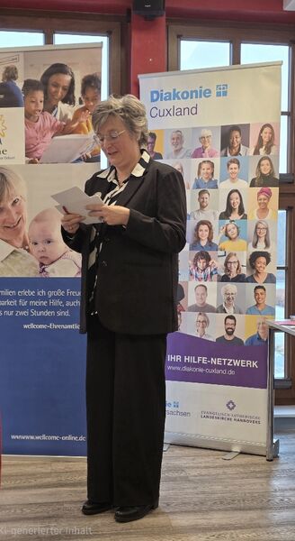 wellcome – Praktische Hilfe nach der Geburt unterstützt Familien durch ehrenamtliches Engagement – nun auch in Cuxhaven. Michaela Wachsmuth, Geschäftsführung der Diakonie Cuxland, begrüßte die Grußwortredner*innen und Gäste. Netzwerkpartner*innen aus dem Sozial- und Gesundheitswesens, der Frühen Hilfe, Hebammen, Kolleg*innen sowie am Ehrenamt interessierte Menschen waren gekommen, um sich über wellcome und sein Angebot zu informieren, sich auszutauschen und zu vernetzen.