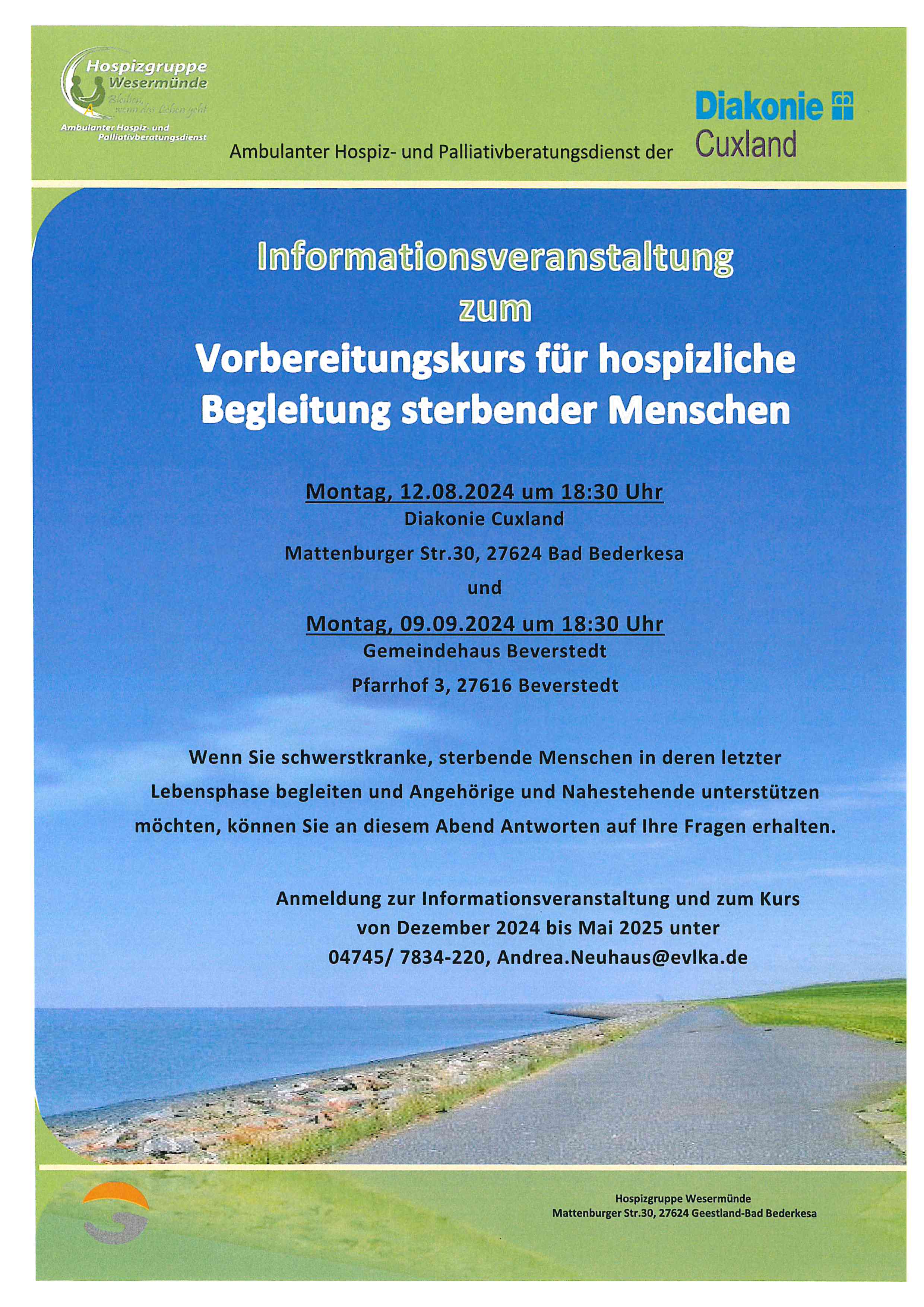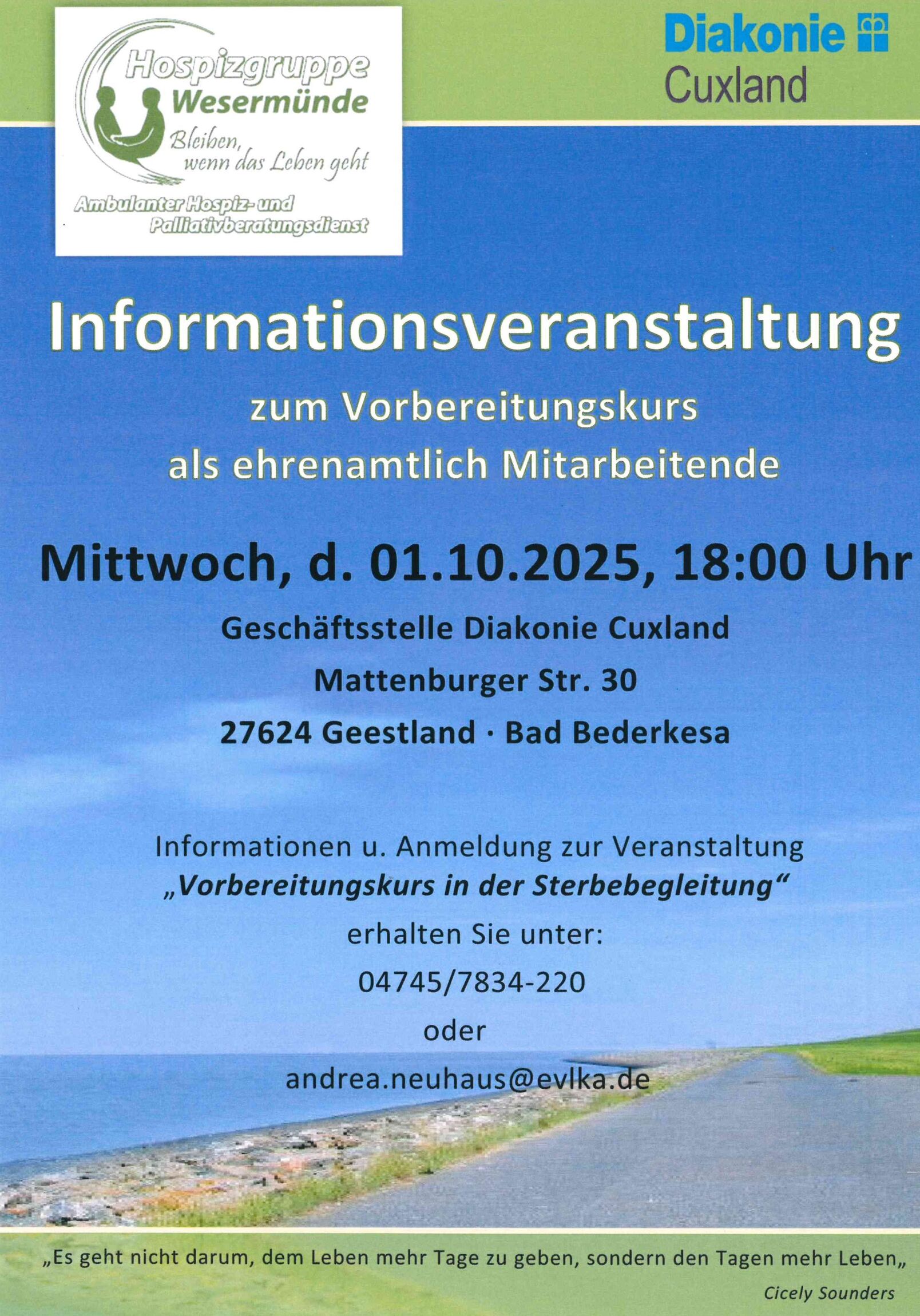 MI 01.10.2025, 18.00 Uhr Geschäftsstelle Diakonie Cuxland Mattenburger Str. 30 27624 Geestland · Bad Bederkesa