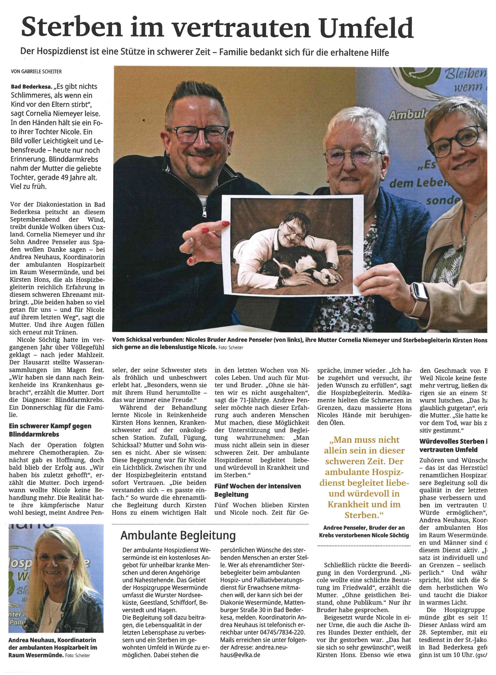 Der Hospizdienst ist eine Stütze in schwerer Zeit - Familie bedankt sich für die erhaltene Hilfe.